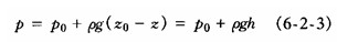 也有教材中用符号γ=ρg,表示单位体积流体的重量上式成p=p0+γh表示。