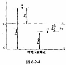 以绝对真空为零点算起的压强称绝对压强;以当地大气压(以工程大气压Pabs)为零点算起的压强称相对压强。绝对压强的数值总是正的,而相对压强的数值要根据该压强大于或小于当地大气压来决定其正负。如某处的绝对压强小于大气压,其相对压强为负值,则称该点存在真空。真空的大小为: