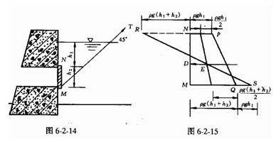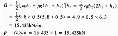 再用图解法求P,先绘静水压强分布图(图6-2-15),然后引用式p=Ω×b 其中: