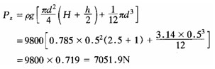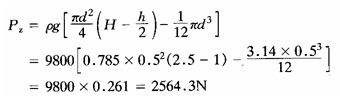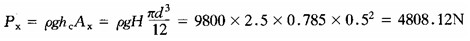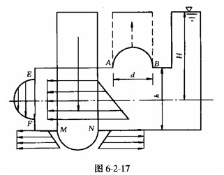 [例6-2-4] 图6-2—17为一贮水容器,容器壁上有三个半球形的盖。已知H=2.5m,h=2m,d=0.5m。试求作用在每个球盖上的液体总压力。