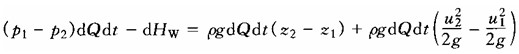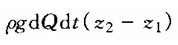 由于流体不可压缩、新旧的位置1—1'、2—2'所占据的体积等于dQdt,质量等于ρdQdt。根据物理学中的公式,动能0.5mu2,位能mgz,所以动能增值为: