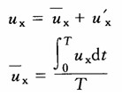 紊流中,流体质点在运动中不断互相混杂,使各点的流速、压强等运动要素都随时间作无规则的变化,这种变化称为脉动现象。图6-4—3表示紊流中某点x方向速度ux(随时间t变化的曲线。同样也可测出该点uy、uz和p随时间的变化曲线。看起来这种变化迅速而无规律,使对紊流的研究十分困难。但经深入分析可知,这种脉动是围绕某一平均值而变化的。这样,可以将紊流看作两个流动的叠加。即时间平均流动和脉动的叠加。某点在某一瞬时x方向的速度ux就等于时间平均速度