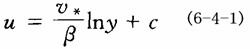 紊流的流速分布,靠近固体边界处与核心区域是不同的。紧贴边界的流体质点流速为零,近边界处很薄的流层内,速度由零增至一定值,所以在此薄层内速度梯度很大,粘性切应力τy不容忽视。而由于壁面限制附近流体质点做横向运动,附加切应力τt可以忽略。这一薄层被称为粘性底层。在粘性底层内流速分布可作为直线分布。粘性底层以外是紊流核心,在紊流核心区域内由于质点相互掺混和动量交换,使断面上速度趋于平均化,分析和实验结果说明紊流过水断面上流速按对数曲线分布,一般公式为