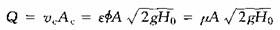 式中 μ=εφ称为孔口的流量系数。经实验测得,圆形小孔口φ=0.97~0.98,μ=0.60~0.62。