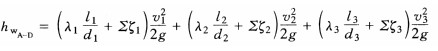 式中 λ1、λ2、λ3分别为各管段的沿程阻力系数;∑ζ1、∑ζ2、∑ζ3分别为各管段的局部阻力系数之和,管段联接处的局部损失视其阻力系数对应于哪段的流速水头则计入该管段损失内。