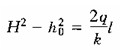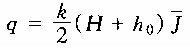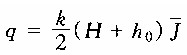 上式为集水廊道浸润曲线方程。设集水廊道中的动水位为h0,含水层在集水廊道未工作前的厚度H,按上式,有