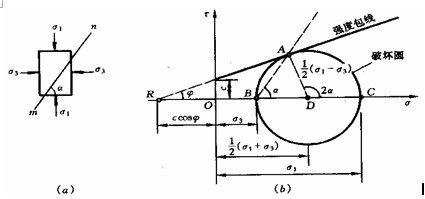 (α)单元微体; (b)极限平衡状态时的莫尔圆