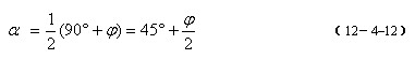 土处于极限平衡状态时极限平衡面与大主应力作用面间的夹角 ,可由图4–9中的几何关系得到: