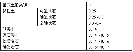 挡土墙基底的摩擦系数μ值表12-5-1 基底土的类别|μ