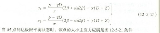 另一部分是条形荷载户p-γD引起的附加应力。根据弹性理论,M点处的大小主应力为