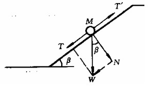 ,现从坡面任取一小块土体,并把它看作是刚体来分析其稳定条件。设土块的重力为W,它在坡面方向的分力是下滑力
