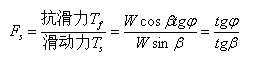 在稳定状态时,阻止土块滑动的抗滑力必须大于土块的滑动力。故用抗滑力与滑动力之比作为评价土坡稳定的安全度。这个比值常称为土坡稳定的安全系数