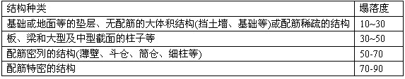 混凝土浇筑时的塌落度(mm) 表10-5-8