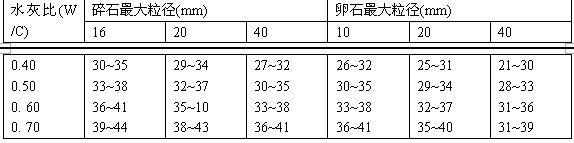 注:1.摘自《普通混凝土配合比设计规程》JGJ55-2000。