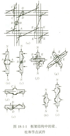 作钢筋混凝土柱的试验研究时,若要探讨其挠曲破坏性能,如图18-1-1(h)的试件是足够的,但若作剪切性能的探讨,则反弯点附近的应力状态与实际应力情况有所不同,为此有必要采用图18-1-1(i)中的适用于反对称加载的试件。