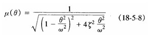 如以μ(θ)为纵坐标,以θ为横坐标,即可画出动力系数(共振曲线)的曲线,见图18—5—5所示。