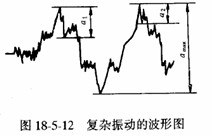 对于复杂的振动(图18—5—12),最大振幅值取最大波幅峰峰值dmax的一半,还需要量 出高频振动的振幅al和a2,可由此判断各种振源的动力影响。