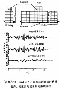 图18—5—20为1964年6月日本新泻地震时在秋田县府大楼一座六层钢筋混凝土框架结构上测得的强震记录。