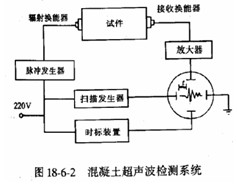 超声波脉冲实质上是超声检测仪的高频电振荡激励仪器换能器中的压电晶体,由压电效应产生的机械振动发出的声波在介质中传播(图18—6—2)。混凝土强度愈高,相应超声声速也愈大.经试验归纳,建立混凝土强度与声速的关系曲线(—v曲线)或经验公式。