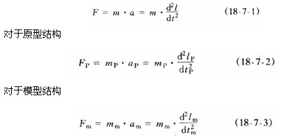 式中F、m、l和t分别为惯性力、质量,位移和时间。下标p与m分别表示原型和模型。由于要求各同名物理量之间有固定的比例常数