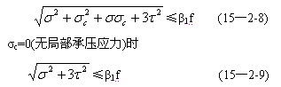 式中σ, τ, σc腹板计算高度边缘同一点上同时产生的正应力、剪应力和局部压应力,σc按式(15-2-6)计算;