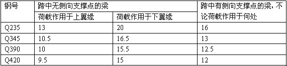 (2)H型钢或者等截面工字形简支梁受压翼缘的自由长度l1与其宽度b1之比。不超过表15-2-1所规定的数值时。