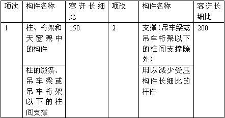轴心受压构件的刚度计算同样采用限制长细比的方法,公式形式同(15-2-20),但 [λ]为压杆的容许长细比,其限值见表15-2-3。