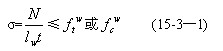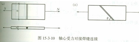轴力N通过焊缝截面中心,认为在焊缝全截面均匀分布,其计算公式为