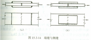 侧缝受力——力与焊缝长度相平行(图15-3-14b),这条焊缝称为侧缝。