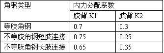 式中 Kl、K2——焊缝内力分配系数,按下表取用;