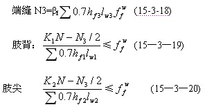 计算时既要照顾到焊缝形心线基本上与角钢形心线一致,又要考虑到侧缝与端缝计算的区别。计算公式如下: