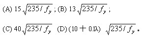 4.工字形截面轴心受压构件翼缘外伸宽厚比b'/t的限值为(D)