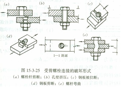 受剪螺栓连接破坏时可能出现五种破坏形式: