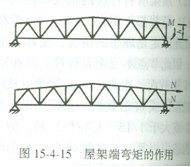 当屋架与柱刚接时,除上述计算的屋架内力外,还应考虑在排架分析时所得的屋架端弯矩对屋架杆件内力的影响。
