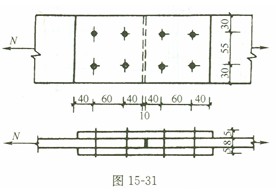 3.图15-31为普通C级螺栓连接,螺栓为M16,孔径为do=17.5mm,钢材N为Q235-A连接能承担的拉力设计值N为:(A)