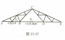 9.在图15-36屋架杆件轴向力时,考虑半跨活载的内力组合,是为了求得(D)