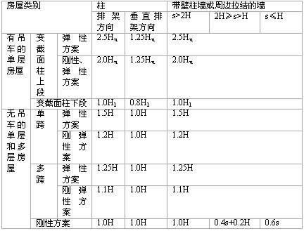 3)当Hu/Hl≥1/2时,取无吊车房屋的Ho,但在确定β值时,应采用上柱截面。