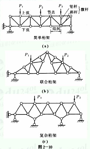 复杂桁架——不属于上述两类的桁架,如图2-10c所示。