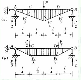 例如在图2—19a所示的内部几何不变部分内将荷载作等效变换(图2—19b),则只有在CD部分内的内力(如弯矩)有变化,而其余部分AC、DB内的反力和内力均不发生变化。