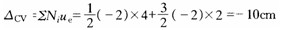 因为各下弦杆的制造误差均为缩短,而虚设状态中各下弦杆均为受拉,两者方向相反,故计算结果为负号,表示C点的竖向位移的实际方向为向上,即C点向上的起拱度为10cm。