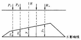 式中 R为集中荷载组的合力,y为与R对应影响线的竖标值。