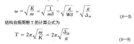 从式(6—8)、(6—9)可知,结构的自振频率和自振周期只与结构的质量和刚度有关,它们是结构很重要的动力特性参数。只要改变结构的质量和刚度,就能改变结构的自振频率或自振周期。在质量相同的条件下,增大结构的刚度,频率也随之增大。