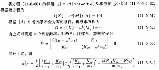 将自振频率ωk代回振幅方程( 11-6 一 61 ) ,得振型方程