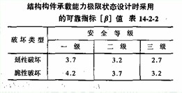 表中延性破坏是指结构构件在破坏前有明显的变形或其他预兆,故[β] 可定得稍低些、脆性破坏是指结构构件在破坏前无明显的变形或其他预兆,故[β] 应定得高些。
