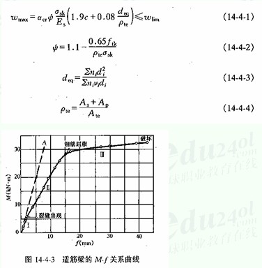 裂缝出现以后 ( 第 II阶段),M- f 曲线越来越偏离直线 OA。这不仅仅由于混凝土的塑性发展,变形模量降低,而且由于受拉区混凝土的开裂,梁的惯性矩I发生了质的变化,刚度下降, f 比 M 增加得决。