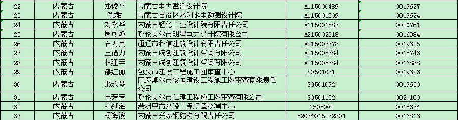 内蒙古符合一级结构工程师初始注册条件人员名单( 第三批)
