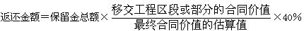 b.如果颁发的履约证书只限于一个区段,则在这个区段的缺陷通知期满后,并不全部返还该部分剩余的保留金: