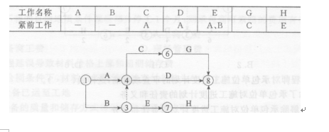 69.根据下表给定的逻辑关系绘制的分部工程双代号网络计划如下图所示,其作图错误是( ).