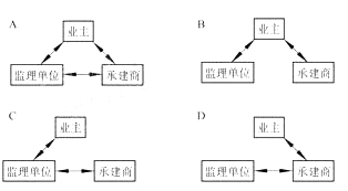 3.在实施监理的工程项目上,业主、监理单位和承建商三方之间的工作交往关系应为( )所示的关系。