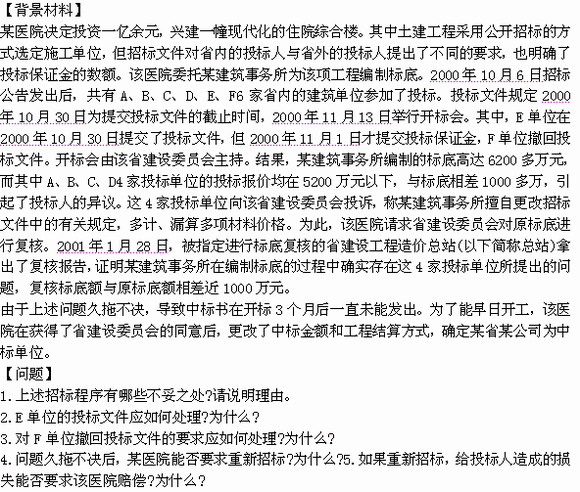 4.问题久拖不决,某医院可以要求重新进行招标。理由是: